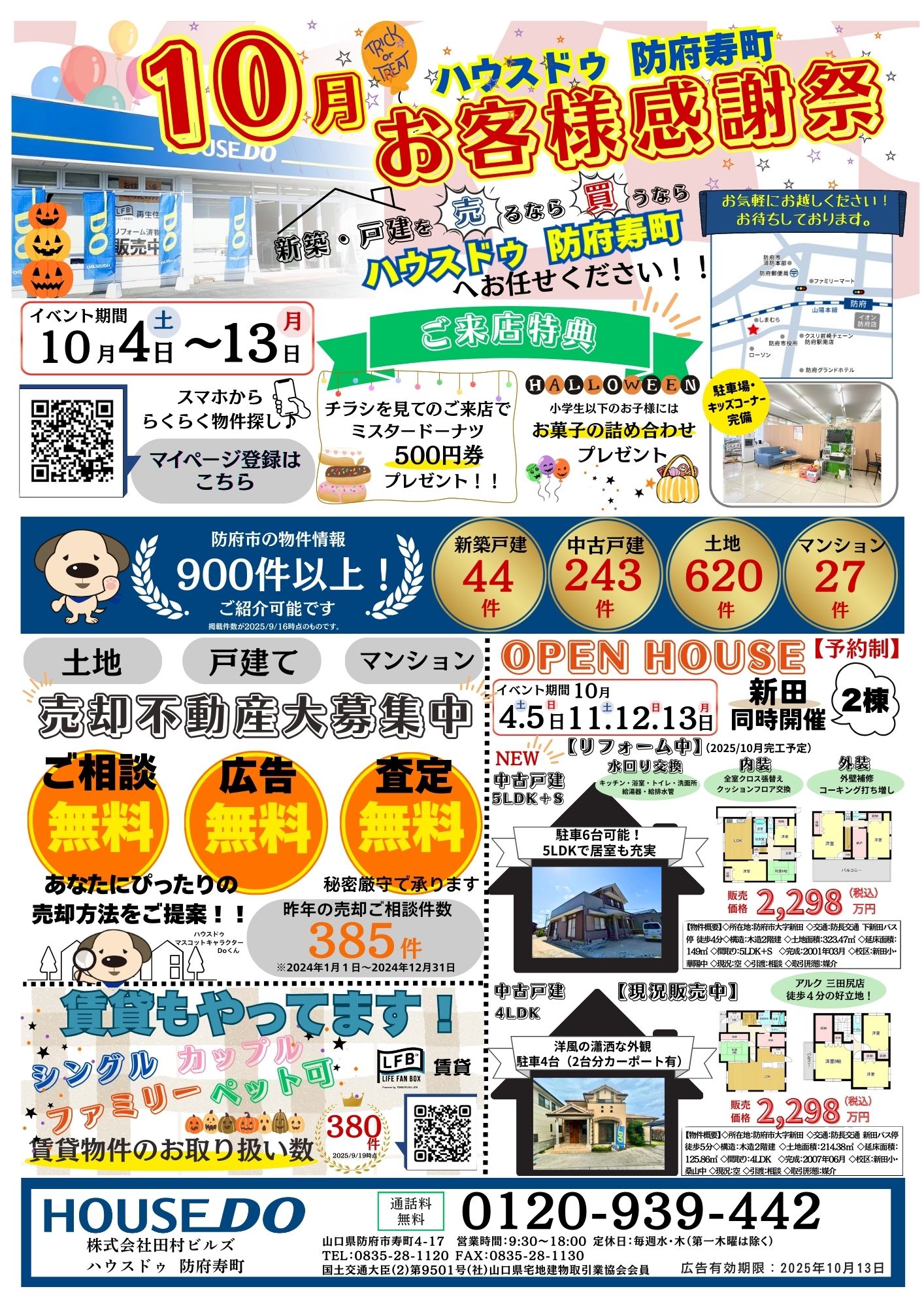 いつもハウスドゥ防府寿町をご愛顧いただき、誠にありがとうございます。