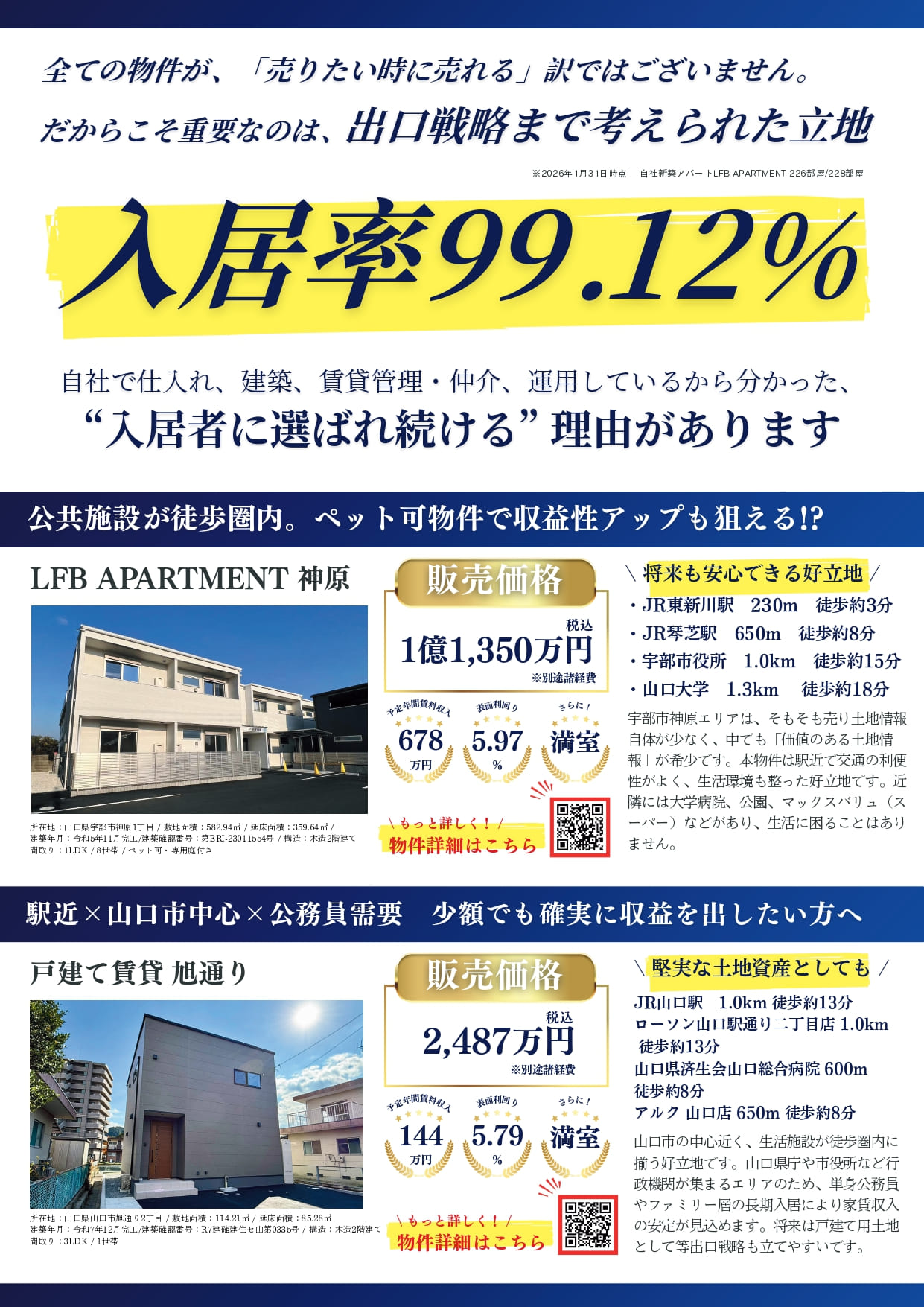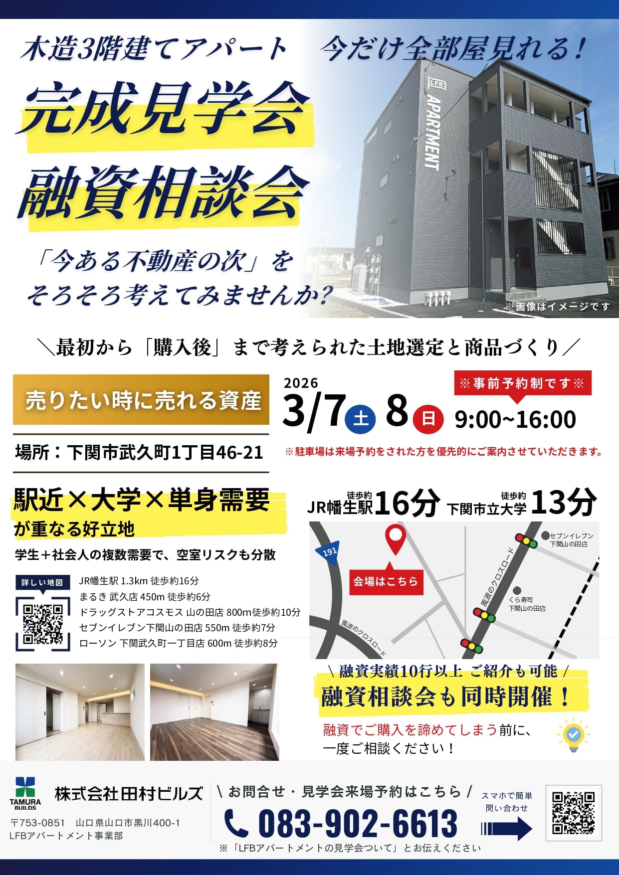 ご予約・お問合せ:083-902-6613(LFBアパートメント事業部)