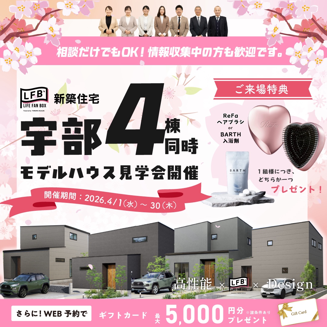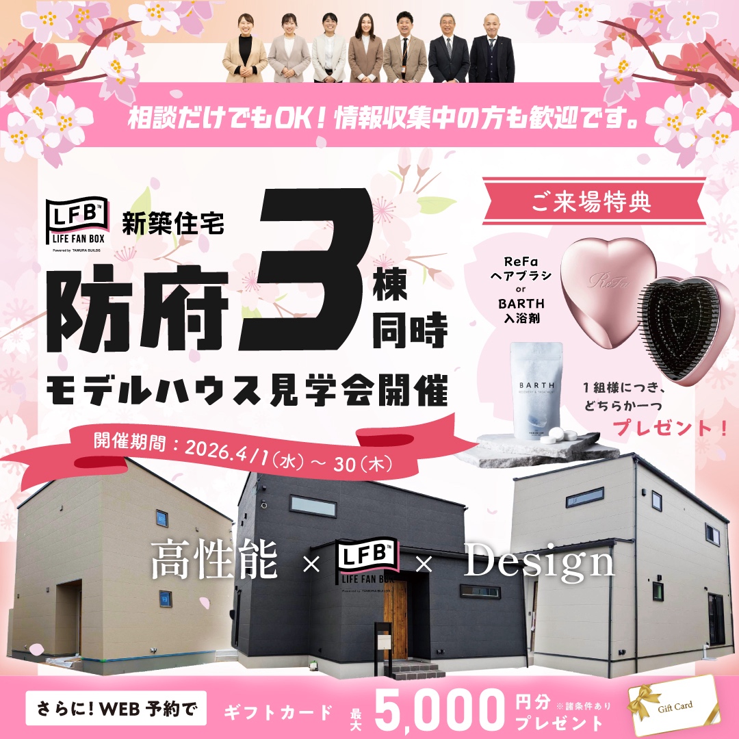 そのLFB新築住宅が山口県防府市と宇部市でモデルハウスの見学会を開催中です!