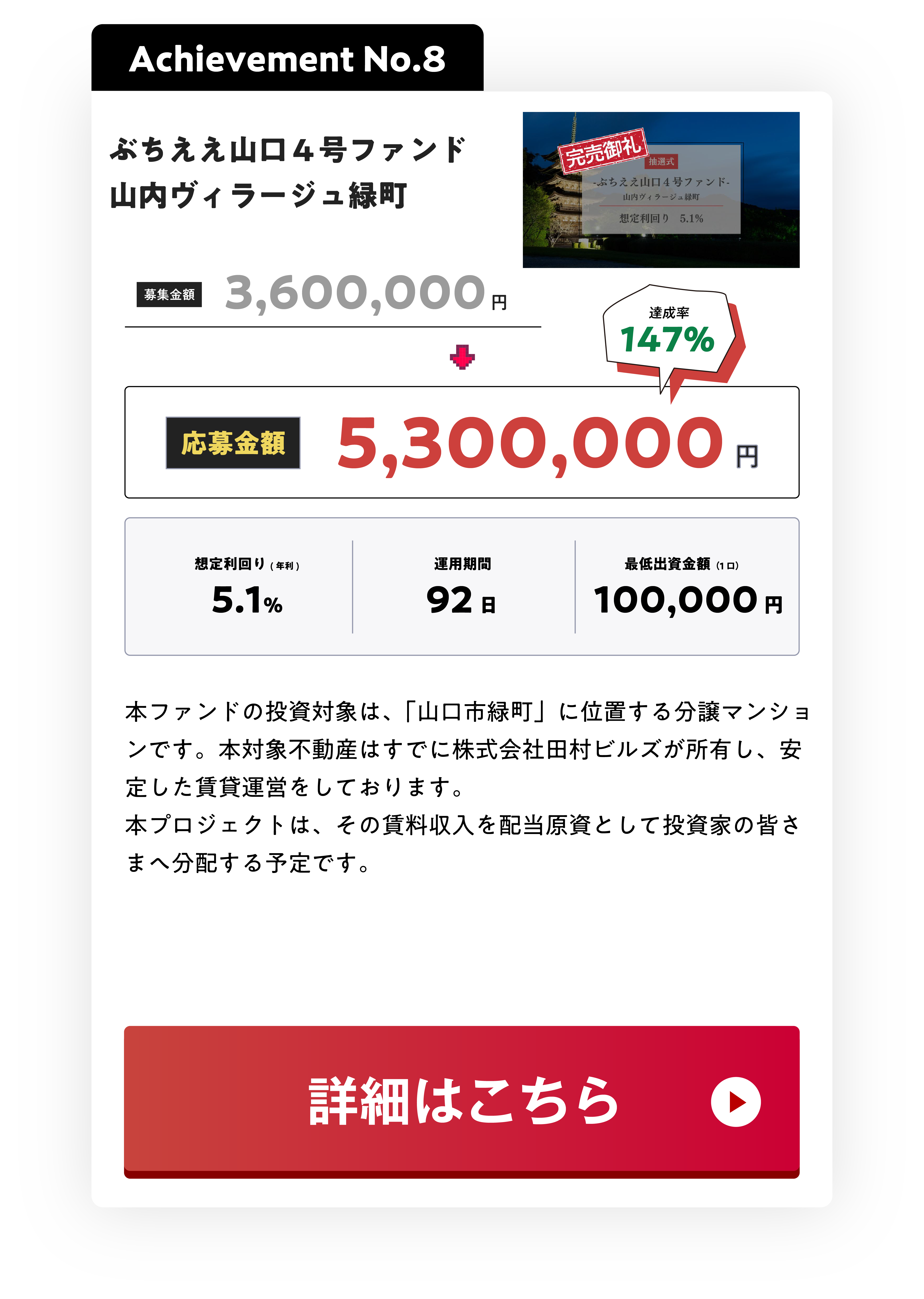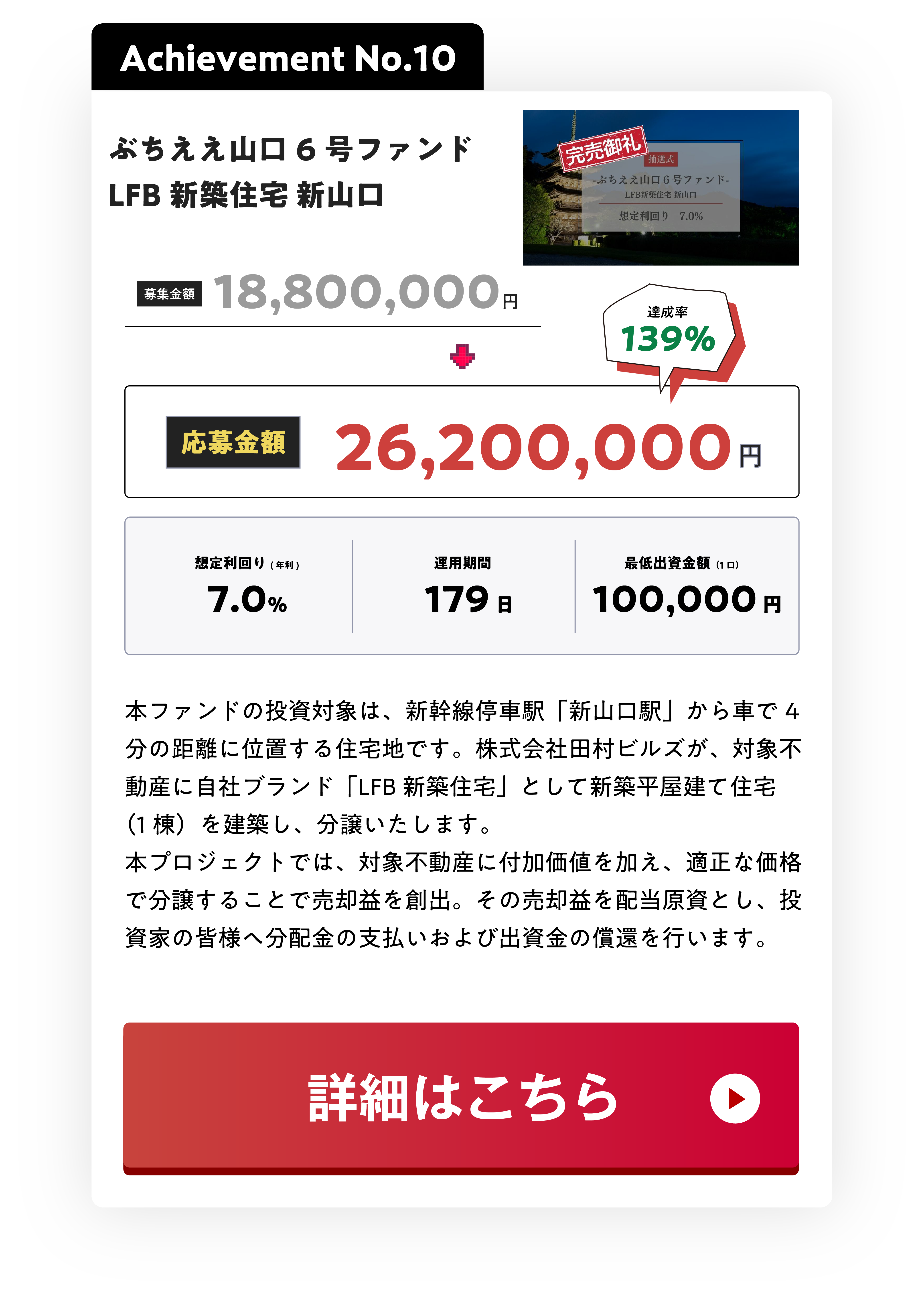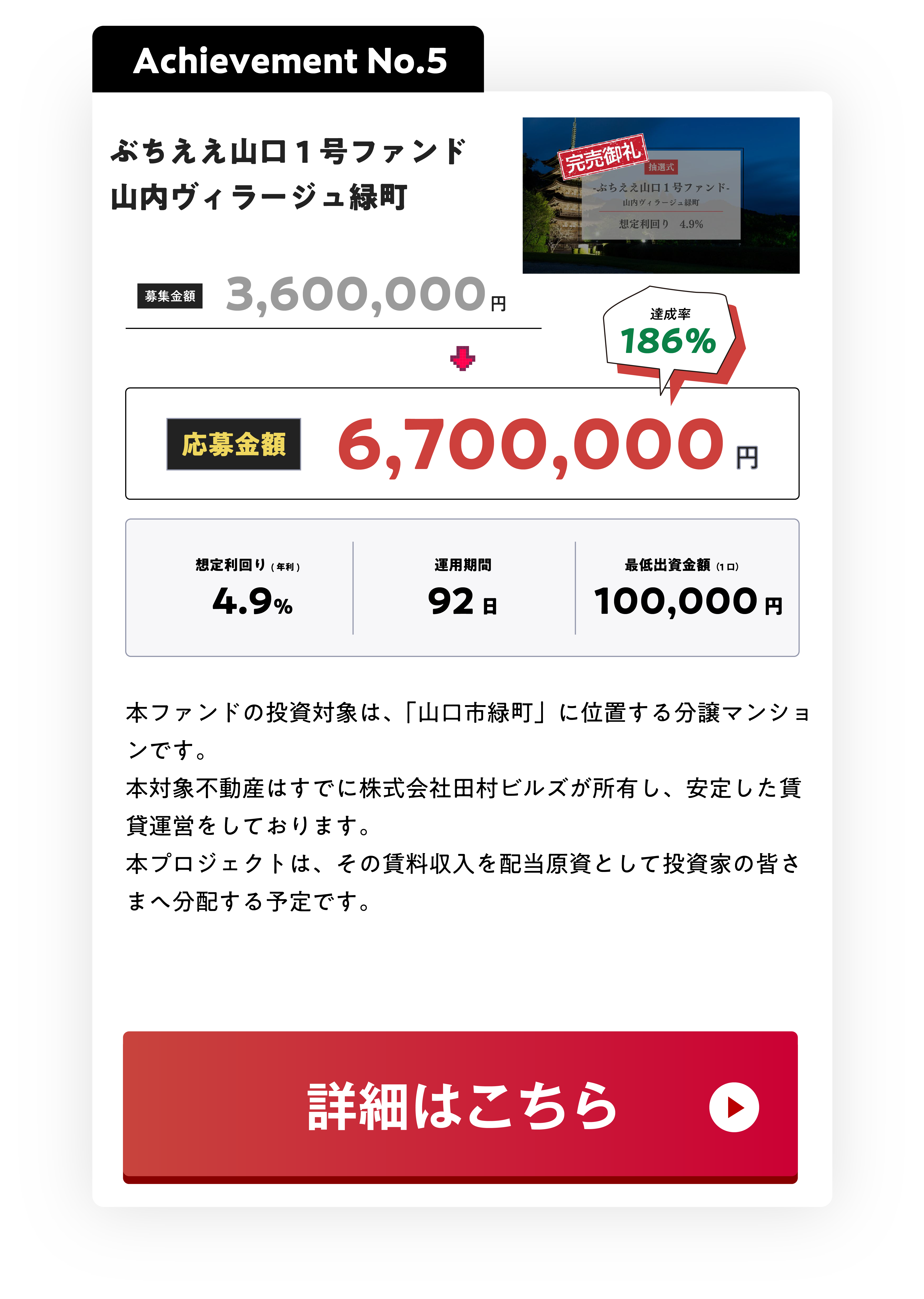 ・プロジェクトが完了し、当社からお客様に元本+配当を償還する際の振込手数料は、当社負担となります。